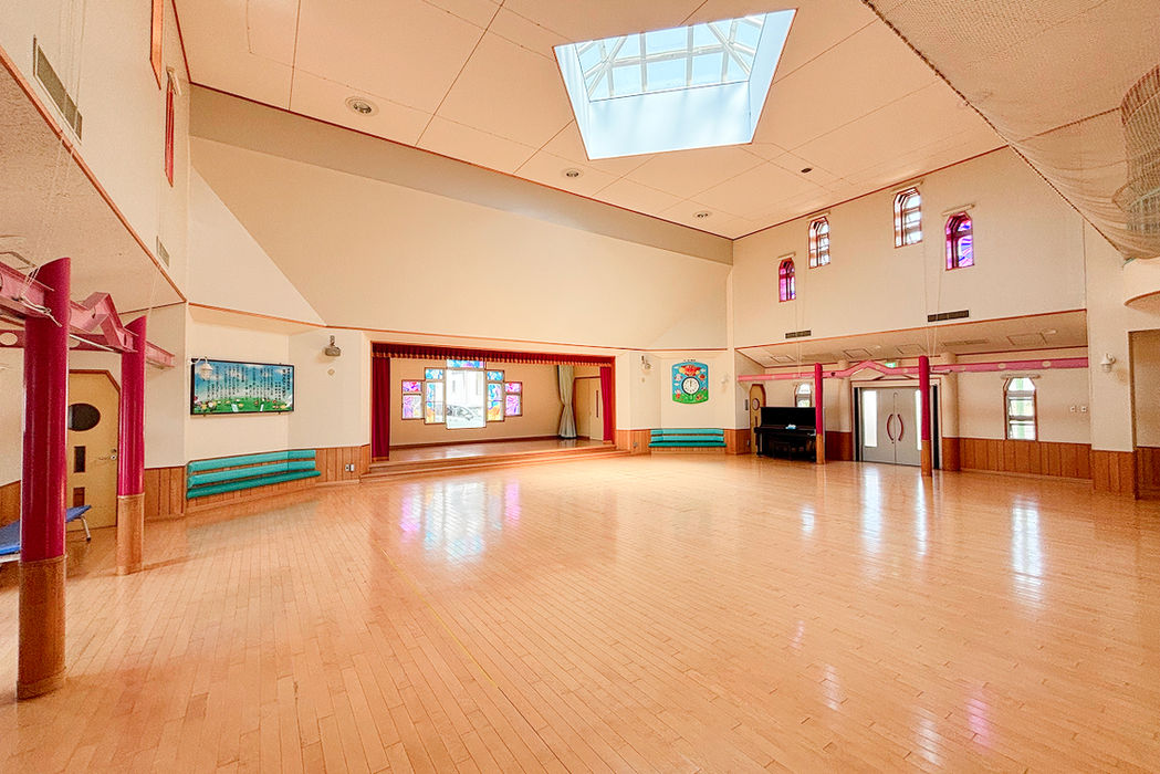 園では、外国人講師による英会話や専門講師による体育指導を取り入れ、遊びの中で学べる環境を整えています。広い園庭と遊戯室、野菜栽培ができる学級園など、自然とふれあえる環境も充実。安全面への配慮として、防犯カメラの設置や設備点検も徹底しています。